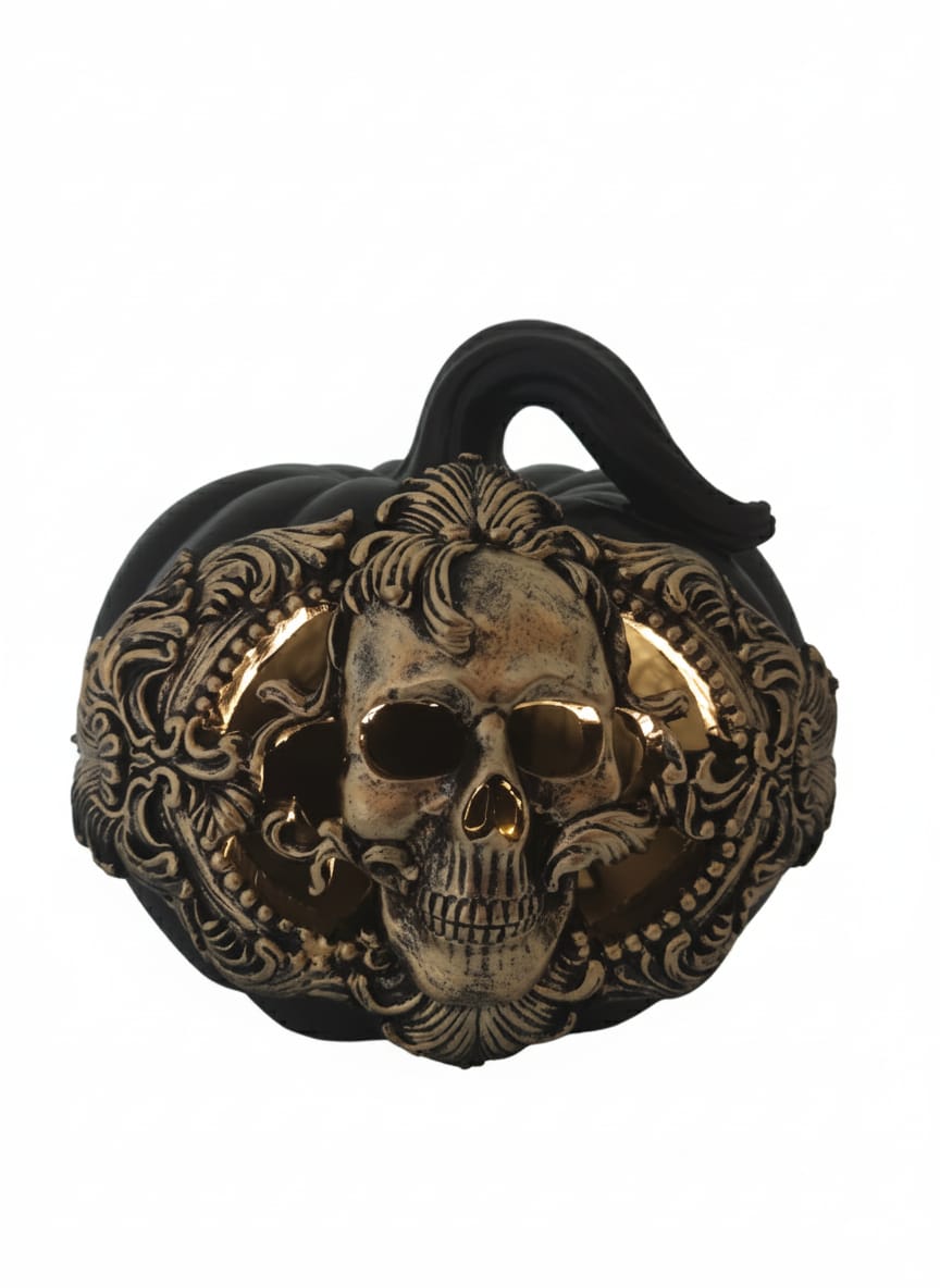 Abóbora com caveira esculpida 22,20 € Desconto de %. Partilhar O produto encontra-se sem stock. Abóbora com luz, com desenho de caveira. Resina, preto e dourado. Pilhas (AAA) não incluídas. Altura: 20cm Tags Caveiraluzabóbora