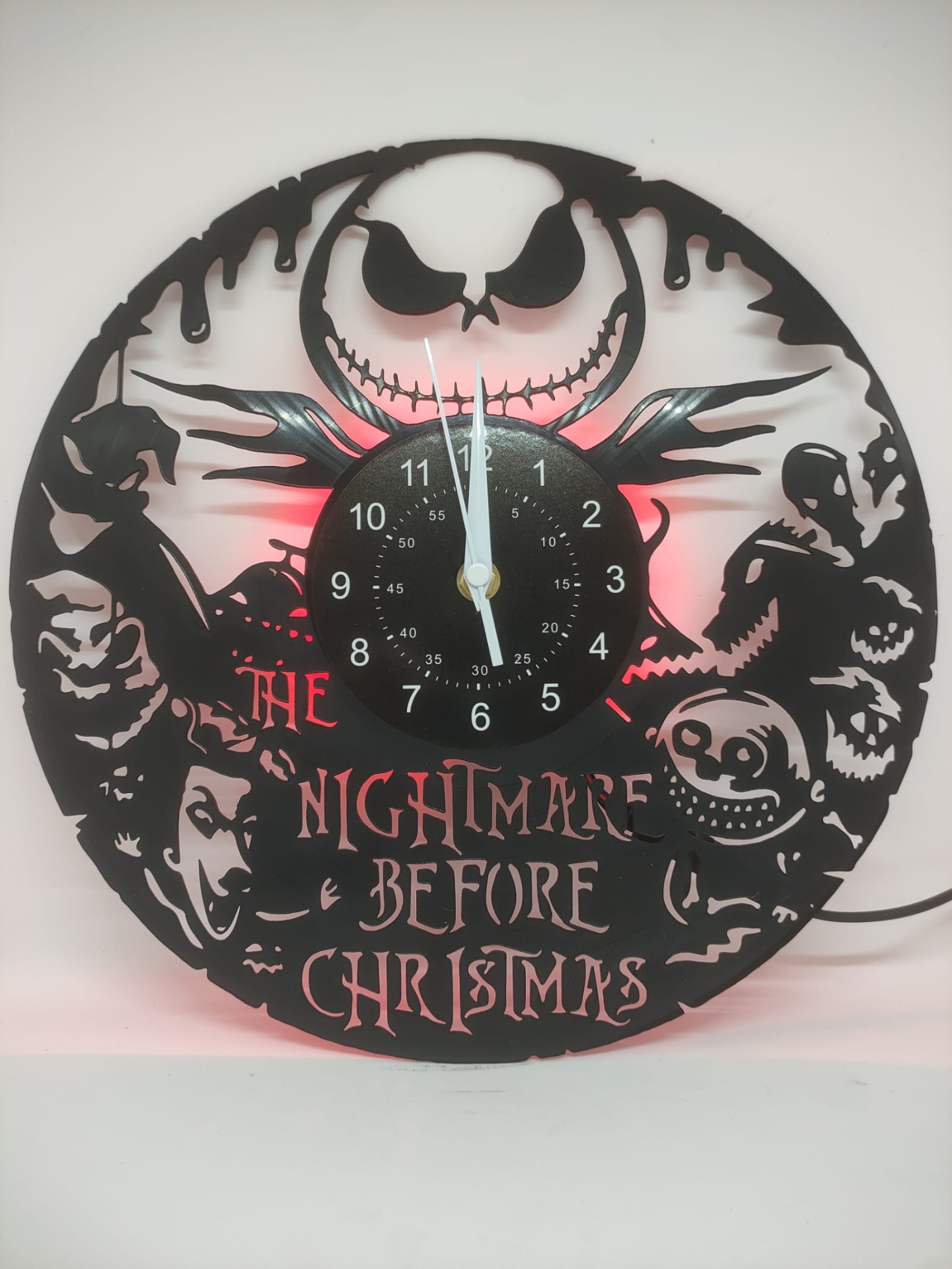 Relógio de parede em vinil - Nightmare Before Christmas 22,20 € Desconto de %. Partilhar Comprar Contactar Relógio de parede feito de vinil. Com luz led, várias cores. Tema alusivo ao filme Nightmare Before Chirstmas do Tim Burton. Diâmetro - 30cm. Tags RelógiovinilNightmare Before Christma
